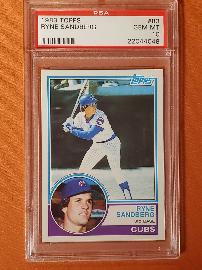 I realize my passion of cards is not something that everyone in my life shares, but I’m fortunate that my wife appreciates. Michelle gifted me this 1983 Topps Ryne Sandberg Rookie Card for a Birthday a few years ago. I did have a Sandberg Rookie Card, but not in a graded PSA 10.