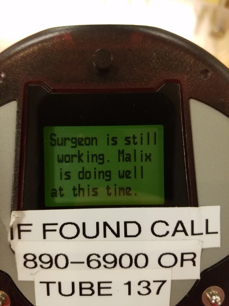 After surgery, we were with family in the waiting room. Dr. A came to speak with us. We stayed in with our family. Dr. A was calm, optimistic, but didn’t want us to get to excited. I remember Michelle’s brother, Kevin, thanking him. Dr. A responded “Don’t think me now, thank me when Malix leaves this place.” That stuck with me that the surgery is over, but there is a very long ways to go.
